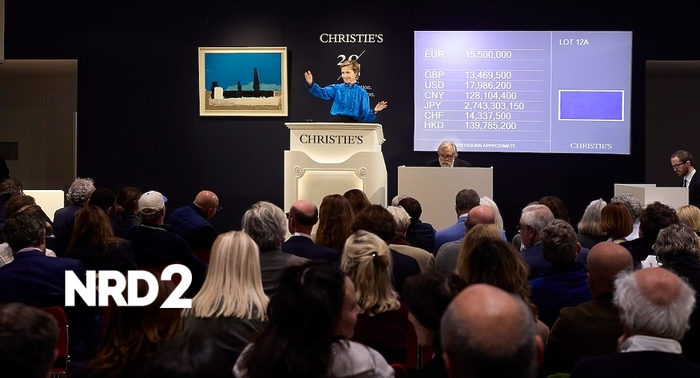 На търг в Christie’s в Париж, картина с ширина 14 фута на художника Ив Клайн (Yves Klein) бе продадена за 18.4 милиона евро (21.4 милиона долара), поставяйки нов рекорд за продажба на произведение на изкуството на Клайн във Франция. Творбата, озаглавена "Калифорния" (California, IKB 71), беше представена като основен лот на търга "Авантгард(и), включително Мислене Италиански", който се проведе през тази седмица. Оценката на произведението варираше между 16 и 25 милиона евро (18 до 29 милиона долара). Картината "Калифорния" (IKB 71) е една от малкото творби на Клайн, които носят заглавие, вдъхновено от щата, в който е била показана непосредствено след създаването си през 1961 година. Клайн, който е базиран в Париж, е посетил Съединените щати само веднъж, за да се срещне с дългогодишната си поддръжничка Вирджиния Дуан, собственичка на известна галерия в Лос Анджелис. Произведението обаче има интересна история, която Christie’s, в сътрудничество с Фондацията Ив Клайн, наскоро разкри: по пътя си от Париж до Калифорния, картината е преминала през Ню Йорк, където е била изложена с търговеца Лео Кастели. Клайн почина през 1962 година на едва 34 години, след кратка, но бурна кариера. "Калифорния" (IKB 71) е била в една и съща колекция в Ню Йорк от 2005 година, когато е била придобита чрез галерия Pace, след като е принадлежала на швейцарския колекционер Джордж Марци. Произведението е било на дългосрочен заем в Метрополитен музея на изкуствата от 2005 до 2008 година, когато е било последно публично изложено. Въпреки че Christie’s не коментираха за консигнатора през септември, източници от арт средите съобщиха, че картината е била продадена от колекцията на бившия председател на United Technologies Джордж Дейвид, чиято компания е подкрепяла изложби в Метрополитен, включително тези на Ван Гог и Джаспер Джонс. Джордж Дейвид не отговори на искането за коментар.