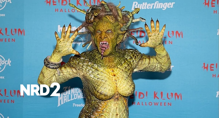 Хайди Клум отново впечатли с костюм на Медуза на легендарното Хайдиуин партиТази година тя се появи в ролята на Медуза, митологичната красавица, превърната в змия. На събитието я придружаваше съпругът ѝ Том Каулиц (Tom Kaulitz), китарист на групата Tokio Hotel. През септември Клум сподели видео в Instagram, в което показва как си прави отпечатъци на зъбите, намеквайки за предстоящия си Хелоуин проект.