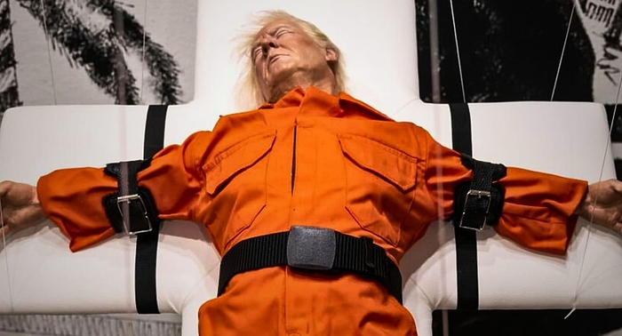 Мейсън Сторм представя скулптура на Доналд Тръмп в Базел, предизвикваща полемика