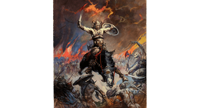 Картината "Конан Берсерк" (1967) на художника Франк Фразета, която китаристът на Metallica Кърк Хамет (Kirk Hammett) закупи през 2009 година за 1 мили ...