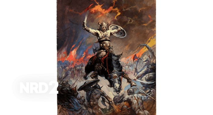 Кърк Хамет предлага "Конан Берсерк" на търг с начална цена 10 милиона долараНа картината Конан изглежда победоносен, с разширени мускулести ръце, наблюдаващ битка на фона на огнено небе. Фразета, описан от Heritage Auctions като един от най-влиятелните илюстратори на втората половина на 20-ти век, е създал произведения, които са сред най-успешните комерсиални арт творби. Според Artnet News, предстоящият аукцион идва след рекорден продажба на картина на Фразета през септември, когато Man Ape (1966) беше продадена за 13.5 милиона долара.