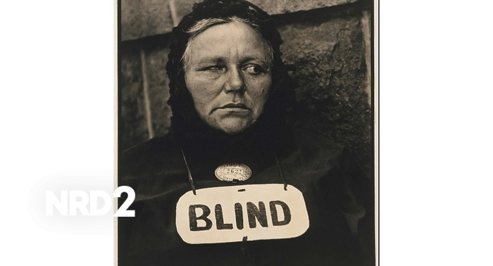 В края на 19-ти век, репортерът Джейкъб Рийс (Jacob Riis) решава да разкрие мизерията на бедните в Ню Йорк. С помощта на експлозивен магнезиев флаш, той успява да освети тъмните ъгли на бедността и да заснеме живота в наемните къщи. Неговата книга "Как живее другата половина" (How the Other Half Lives) от 1890 година представя реалността на хората, живеещи в условия на крайна бедност. Една от снимките, която привлича вниманието, е "На горния етаж в Алеята на слепите". Тя показва тясна стая с три фигури около малка печка. Рийс описва, че Алеята на слепите е била дом на слепи просяци, а собственикът на имота, Даниел Мърфи, е печелил значителни суми от наемите. Интересно е, че при опитите си да заснеме снимката, Рийс почти запалва помещението, но успява да потуши огъня. Тридесет години по-късно, фотографът Пол Странд (Paul Strand) използва иновативна техника, за да заснеме хора без тяхното знание. През 1916 година той прави известната снимка "Сляпа жена", която показва жена, продаваща вестници. Тя носи знак, на който пише "сляпа", и погледът ѝ е насочен извън кадъра, което предизвиква интерес у зрителя. Въпреки че фотографията често се възприема като обективен документ, тя носи със себе си множество предразсъдъци и интерпретации. Въпросът за представянето на слепите в изкуството е сложен, тъй като много от изображенията предизвикват стереотипи за страдание и уязвимост. Снимките на слепи хора, направени от Рийс и Странд, предизвикват размисли за начина, по който обществото възприема инвалидността. Важно е да се помни, че животът на тези хора не се състои само от страдание, а включва и радост, любов и сложност. Фотографиите на Джейкъб Рийс и Пол Странд предизвикват нови въпроси за начина, по който виждаме и разбираме света около нас, и как можем да се учим да виждаме по-дълбоко, извън повърхностните изображения.