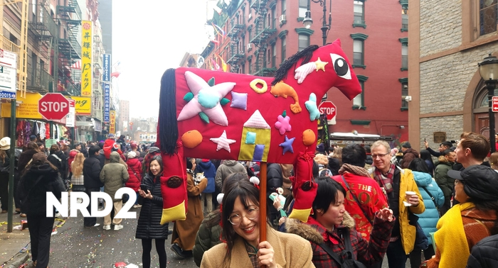 В Ню Йорк, в Чайнатаун, празниците по случай Лунната Нова година оживяха с ярки цветове и радост. На 17 февруари, след дълги седмици на студени температури, жителите и посетителите на района се събраха на улица Мот, за да отпразнуват настъпването на Годината на Огнения Кон. Илюстраторът и педагог Сарала Бао (Sarula Bao) представи уникален ръчно изработен куклен театър под формата на кон, вдъхновен от традиционното китайско изкуство. Тя беше избрана за участие в програмата Lantern Residency, организирана от културната неправителствена организация Think!Chinatown (T!C). Тази инициатива дава възможност на артисти да създават и показват свои интерпретации на хартийните фенери, които са важна част от празнуването на Лунната Нова година. Сарала Бао се вдъхнови от бу зха (??), форма на текстилно изкуство, свързана с етническото малцинство Бай в провинция Юннан, Китай. Тя създаде голямо куклено представление, което изобразява кон с множество апликации, символизиращи късмет и защита. Куклата, наречена "Сяо Баома" (Xiao Baoma), което означава "Малък Прекрасен Кон" на мандарин, се движеше над главите на зрителите, контрастирайки с облачното небе и цветните конфети, които валяха отгоре. Сарала сподели, че е искала да включи традиционни мотиви, свързани с късмет и просперитет, като мандарини, риби, монети и юанбао, които исторически са били използвани като валута. Тя добави и свои символи, които асоциира с щастие, като звезди и музикални ноти. Куклата на Бао ще бъде отново на улица Мот по време на празника Super Saturday на 28 февруари от 15:00 до 17:00 часа. T!C организира и други креативни и кулинарни програми през първата седмица на март, за да отпразнува Годината на Коня.