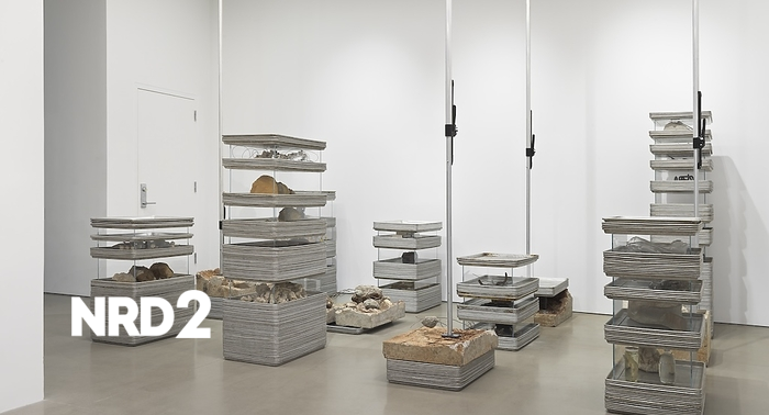На един тих и облачен следобед в Трибека, художникът Майкъл Джу (Michael Joo) и аз се озовахме до кула от алуминиеви тави за печене. Тези конструкции покриваха цяла част от Space ZeroOne, новата инициатива на Фондацията за култура на Ханва. Галерията беше почти празна. Джу се движеше бавно между колоните от тави, понякога се навеждаше, за да погледне в една от тях, или посочваше стъклените стени между купчините, които превръщаха кулите в импровизирани витрини. Той споменаваше различни предмети, които е събрал през годините, включително VHS ленти и рисунки на Кара Уокър. Отдалеч инсталацията изглеждаше архитектурно, но отблизо напомняше на чекмеджета в архив, който Джу изгражда от десетилетия. Тавите, които той описва като част от 100 години кулинария в Ню Йорк, са основата на произведението "Конкатенации", централната част от изложбата "Модели на пот 1991–2026". Изложбата, открита на 20 февруари, преразглежда работи, които Джу е започнал да създава в началото на 90-те години, след като се е преместил в Ню Йорк. По време на открития прием, инсталация, наречена "Сол на величието" (1992), се срути след като посетител случайно я удари. Блоковете сол се разпръснаха по пода на галерията, а четирима посетители получиха леки наранявания. Джу говори за инцидента с разочарование, но увери, че работата ще бъде възстановена. Блоковете сол, използвани в скулптурата, са обикновено предлагани като минерални добавки за добитък, така че подмяната им е лесна. Джу сподели, че много от материалите в изложбата имат силна връзка с неговото минало. Някои идеи зад изложбата датират от края на 80-те и началото на 90-те години, преди Джу да има търговска изложба. "Конкатенации" започва с поръчка от White Columns, а Джу споменава, че е имал достъп до анонимизирани медицински записи, свързани с изследвания за СПИН. По време на разговора, в галерията влезе и друг художник, Адриан Вилар Рохас (Adrian Villar Rojas), известен с големите си инсталации. Двамата художници се познават от години и споделят опит и вдъхновение. Джу разказа за съвместно проучване в Обединените арабски емирства, където изследвали находища на фосили. Джу сподели, че майка му е била агроном, родена в Северна Корея, и е бягала на юг по време на Корейската война. Тя е започнала първия агрономически факултет в Пхенян. Тези корени и опит влияят на работата му и на начина, по който възприема пространството и земята. Джу сподели, че очаква бързо възстановяване на "Сол на величието", а галерията, която беше затворена след инцидента, отново отвори врати. Той отбеляза, че инсталацията не му се струва ретроспективна, а по-скоро генерираща, като пътуване назад във времето, за да се движи напред.