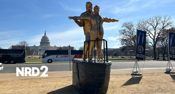 В централната част на Вашингтон, пред Капитолия, се появи нова скулптура, която предизвика интерес и дискусии. Произведението, озаглавено "Цар на света", изобразява президента Доналд Тръмп в малка поза с осъдения за сексуални престъпления Джефри Епстийн. Скулптурата е вдъхновена от известната сцена от филма "Титаник", в която главните герои Джак и Роуз стоят на носа на кораба. Анонимният артист или артисти, известни с псевдонима "Тайната ръкавица", създават това произведение, за да подчертаят връзката между Тръмп и Епстийн, особено след неуспешното разкритие на документи от Министерството на правосъдието, свързани с обвинения срещу президента. Скулптурата е придружена от табела, която иронизира "трагичната любовна история" между Джак и Роуз, сравнявайки я с приятелството между Тръмп и Епстийн. Произведението е допълнено с десет големи банера, на които са изобразени снимки на двамата мъже, подчертавайки интереса на президента да добавя лицето си на правителствени сгради. Според документи, публикувани от Министерството на правосъдието, жена е заявила, че е имала сексуален контакт с Тръмп, след като го е срещнала чрез Епстийн. Скулптурата "Цар на света" ще остане на показ до 14 март, а "Тайната ръкавица" е известна с предишни произведения, които критикуват близките отношения между Тръмп и Епстийн.