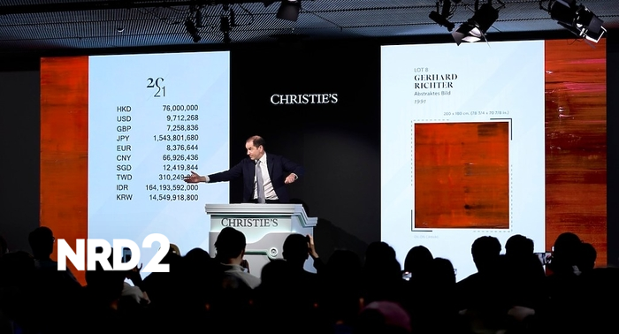 Аукционите в Хонконг постигат рекорди с впечатляващи продажби на модерно и съвременно изкуствоВодещото събитие беше вечерният търг на Christie’s на 27 март, който постигна 655.7 милиона хонконгски долара (83.8 милиона долара). Следващата по стойност творба беше Cheval agenouille sur un tapis на Сандю, която достигна 63.94 милиона хонконгски долара (8.17 милиона долара) след активна наддаване. По време на вечерния търг бяха поставени и нови рекорди за някои художници, включително за Уолтър Спийс и Йоханес Гьодерт.