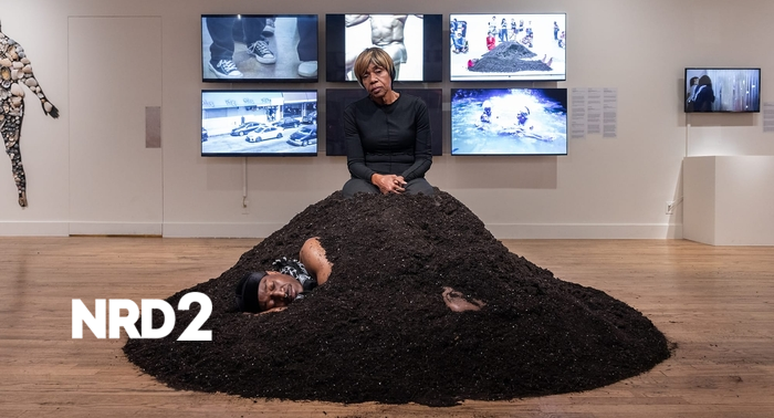 В изложба, наречена "Свещено и Профанно", поетесата и художничка Памела Снид (Pamela Sneed) представя стихотворение, в което мечтае да срещне приятелите си в спешното отделение. Събитието се провежда в музея Leslie-Lohman в Сохо, който е известен със своето значение за изкуствата, свързани с LGBTQ+ общността. Музеят е станал убежище за изкуство, което отразява опитите на различни идентичности, подложени на политически атаки. Снид чете стихотворение, а до нея на сцената е визуалният и перформативен артист Карлос Мартил (Carlos Martiel), който е почти изцяло покрит с пръст, с видими само ръбове на лицето. Неговата майка седи неподвижно на върха на купчината пръст, наблюдавайки сина си. Тази сцена е символ на дългогодишната им връзка и на тъгата, свързана с преждевременната загуба на деца. Публиката е събрана в стаята, която бързо се запълва с дъх и очакване. След известно време, Мартил става и напуска сцената, облечен само с черно-бяла кефия. Творбата му, наречена "Без Възкресение", пренася зрителите в ритуал на тъга, в който се импровизира колективен безсловесен ритуал. Събитието е част от усилията на музея да свърже изкуството с нуждите на живата общност от артисти. Снид и Мартил представят интергенерационна и транснационална колаборация, която предизвиква традиционните представи за времето и пространството в музея. Техните творби са свързани с историята на търговията с роби и активното изтриване на BIPOC историята. В предишни месеци, в същото пространство, Джошуа Обаволе (Joshua Obawole) е представил произведение, наречено "Вълни", в което използва морска вода и човешка коса, за да изрази паметта за трансатлантическата търговия с роби. Творбите на чернокожи, куиър и транс артисти от двете страни на Атлантика преобразуват тъгата в ритуал и общност. Събитието в музея Leslie-Lohman е пример за новата сцена на изкуствата в Ню Йорк, която продължава да се развива, въпреки предизвикателствата.