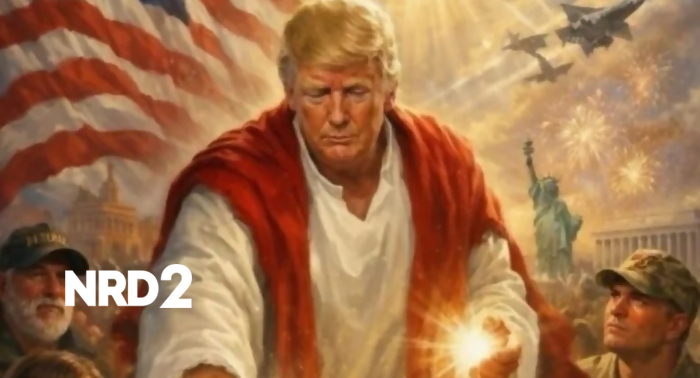 На Великден, Доналд Тръмп предизвика вълна от критики, след като публикува AI-създадено изображение на себе си в ролята на Исус Христос. Това стана веднага след като отправи критики към папа Лъв XIV в социалната мрежа Truth Social. Изображението пародира традиционния католически образ на Божествения Лекар, като Тръмп е облечен в бяла мантия и червен халат, а от лявата му ръка излъчва светлина, докато дясната му ръка е поставена на челото на мъж в болнично легло. Около него са разположени различни персонажи, включително по-възрастен мъж с тъмен шапка, мъж във военна униформа, жена с хирургическа шапка и стетоскоп, и друга жена с ръце, сложени в молитва. На фона се вее американски флаг, а в небето летят орли и изтребители, над Статуята на свободата и Мемориала на Линкълн. Тръмп публикува изображението след политическа атака срещу папата, в контекста на сегмент от предаването 60 Minutes, който разглежда опозицията на папата и американските католически лидери срещу политиките на президента. В поста си Тръмп заявява, че ако не беше в Белия дом, папа Лъв нямаше да бъде във Ватикана. След бурната реакция от страна на неговите поддръжници, включително епископ Робърт Барън, постът беше премахнат. Консервативният коментатор Майкъл Ноулс, който също е практикуващ католик, посочи, че президентът трябва да изтрие изображението, независимо от намерението му. Дори и рицарите тамплиери, крайно десен католически група, изразиха недоволство и поискаха премахването на "обидното и богохулно изображение". Днес Тръмп отрече, че изображението го представя като Исус, твърдейки, че всъщност е изобразен като лекар. Неговият опит да се представи за американски месия обаче му струва част от най-лоялните католически поддръжници, които сега трябва да избират между публична подкрепа за папата или президента.